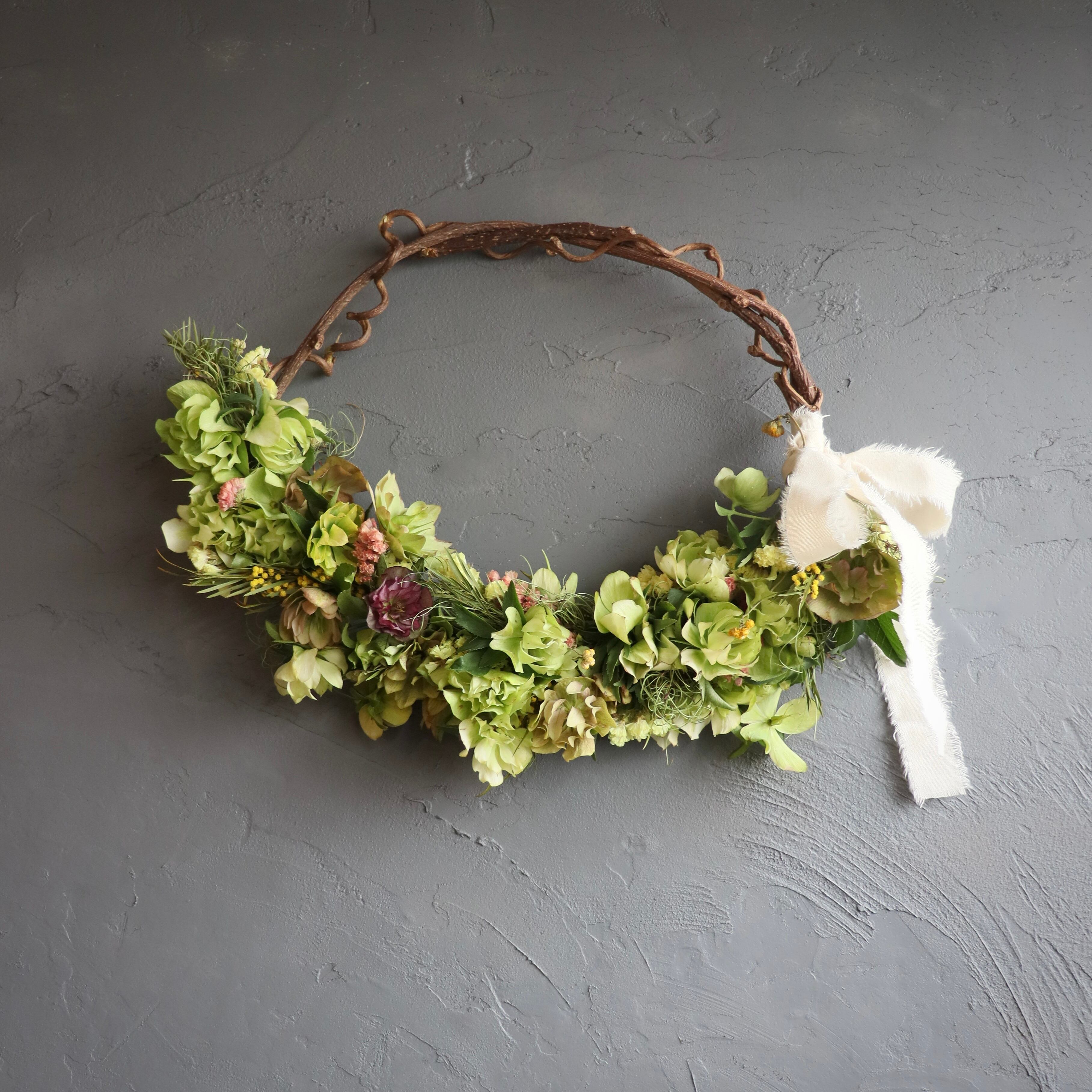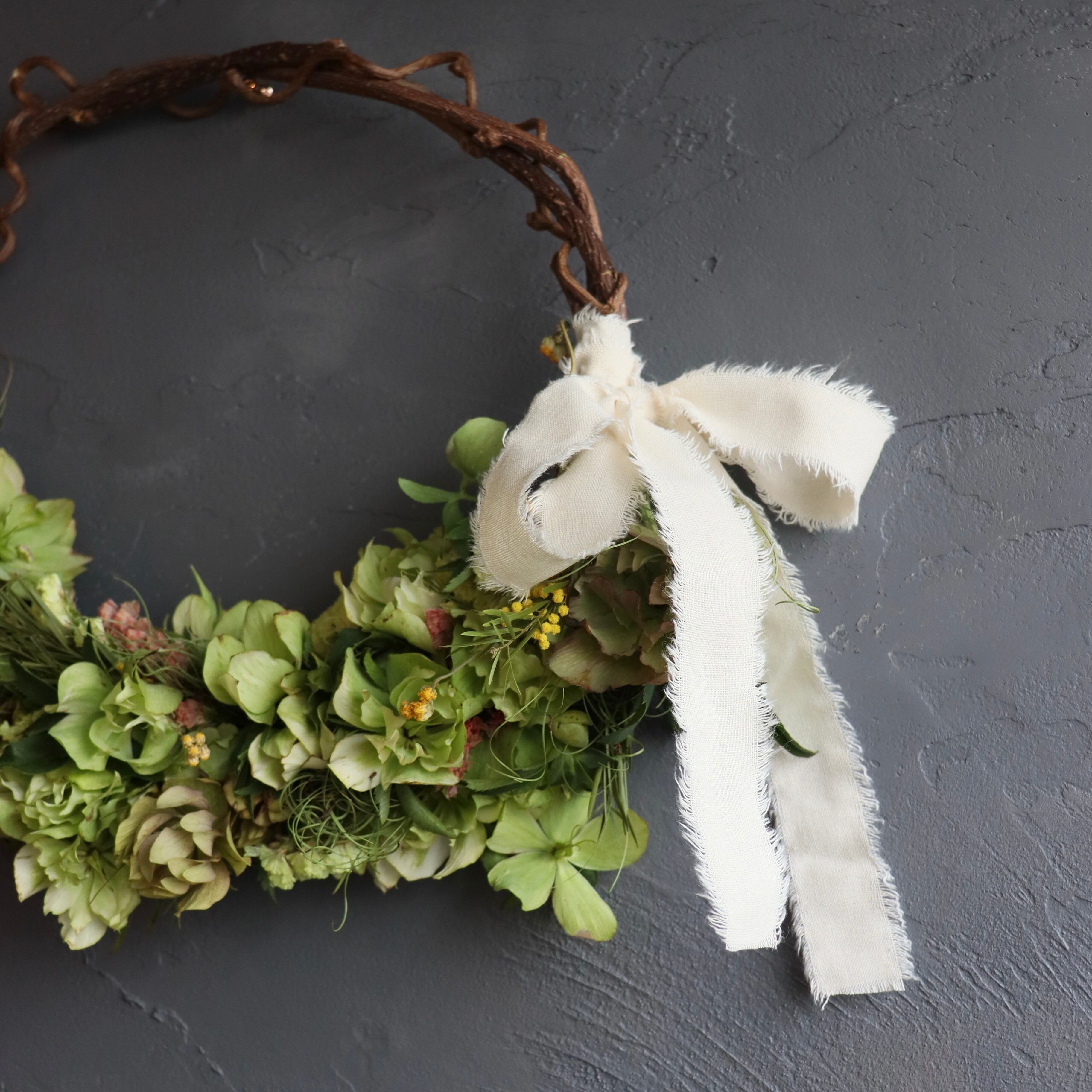 ドライフラワーリース ドライになるリース ナチュラルリース おしゃれ 壁飾り ドア飾り インテリア クリスマスローズ ミモザ ナチュラルインテリア 壁掛けインテリア 玄関 リビング 店舗ディスプレイ 店舗装飾 ギフトラッピング 結婚祝い 新築祝い 誕生日プレゼント 開店祝い 贈り物 ギフトラッピング