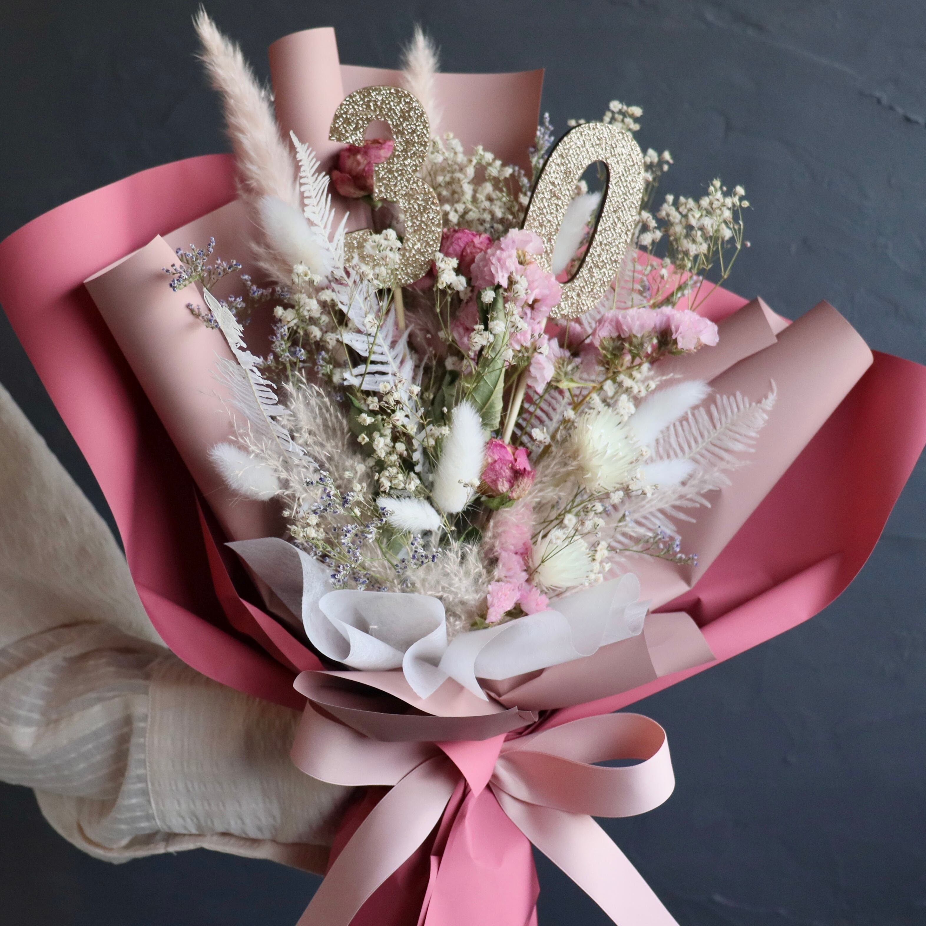 〈数字で魅せる特別感!〉おまかせオーダー花束② / ドライフラワー 還暦祝い 古希 喜寿 米寿 結婚祝い 両親贈呈 開店祝い 誕生日プレゼント