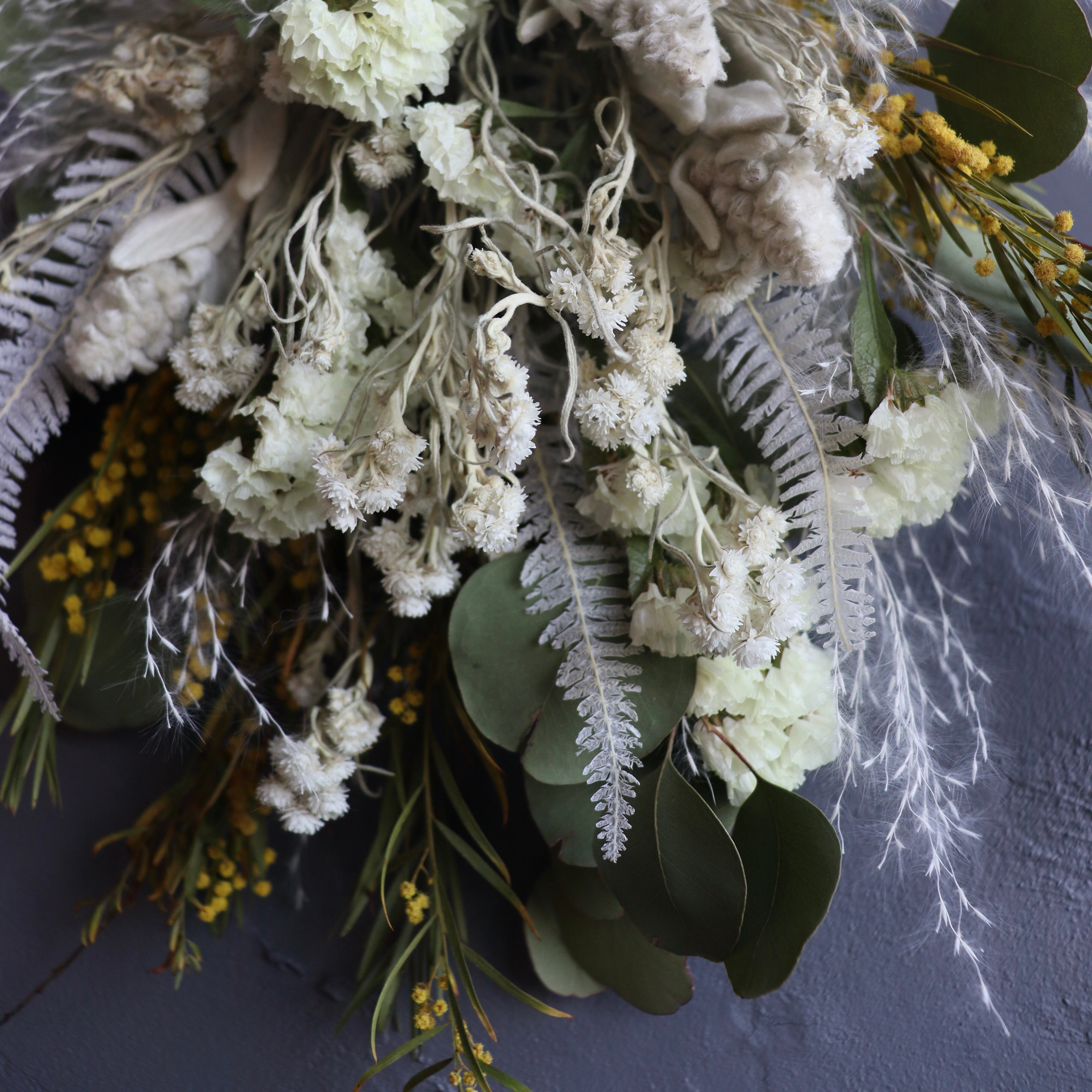 ナチュラルな色味にこだわったドライフラワースワッグ・:*