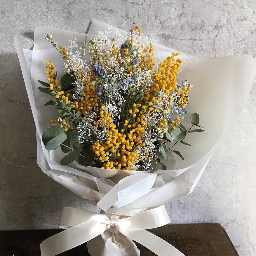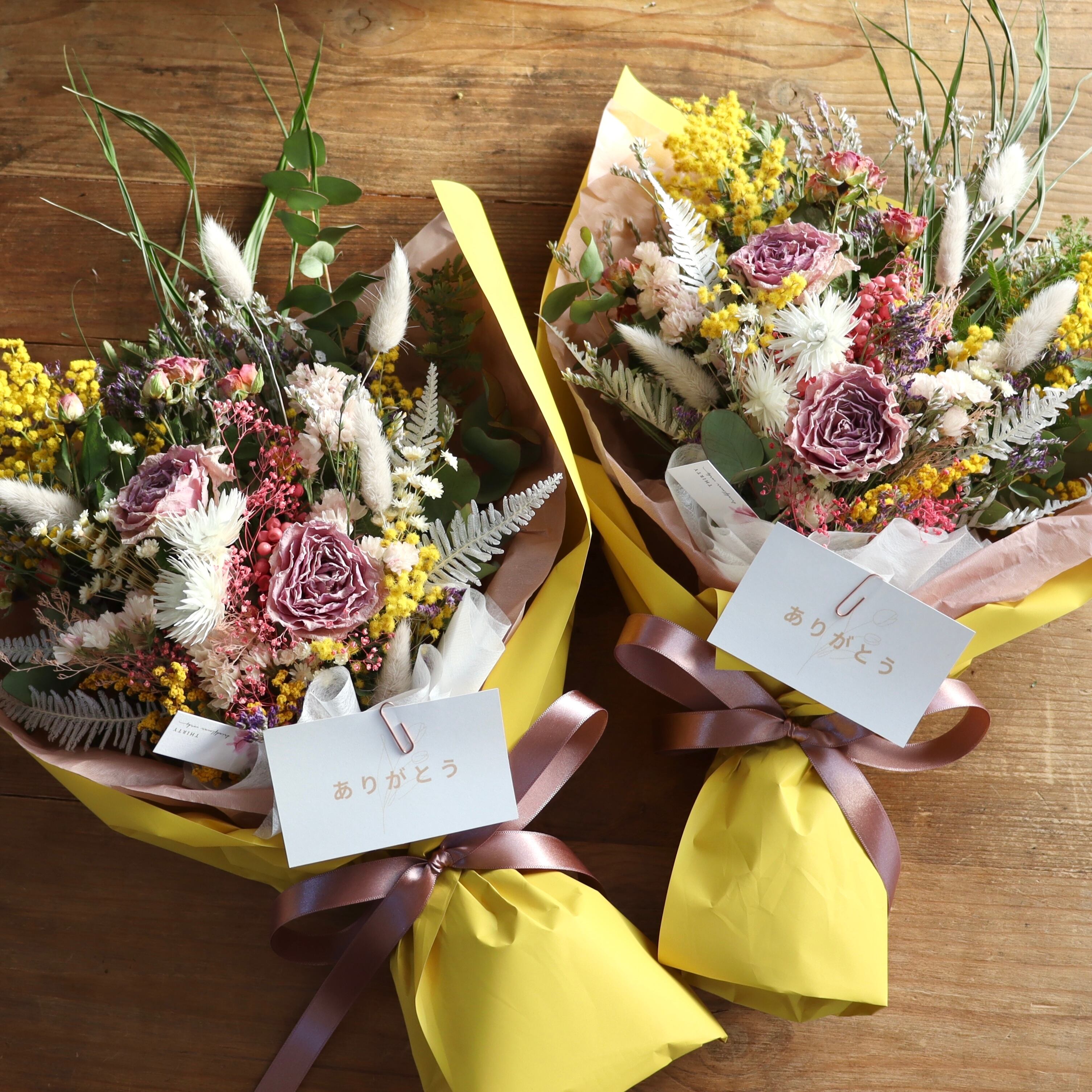 予約可【ミモザのおまかせオーダー花束】ドライフラワー 結婚祝い 開店祝い 誕生日 新築祝い 卒業祝い 退職祝い 花束贈呈 ミモザ ビタミンカラー