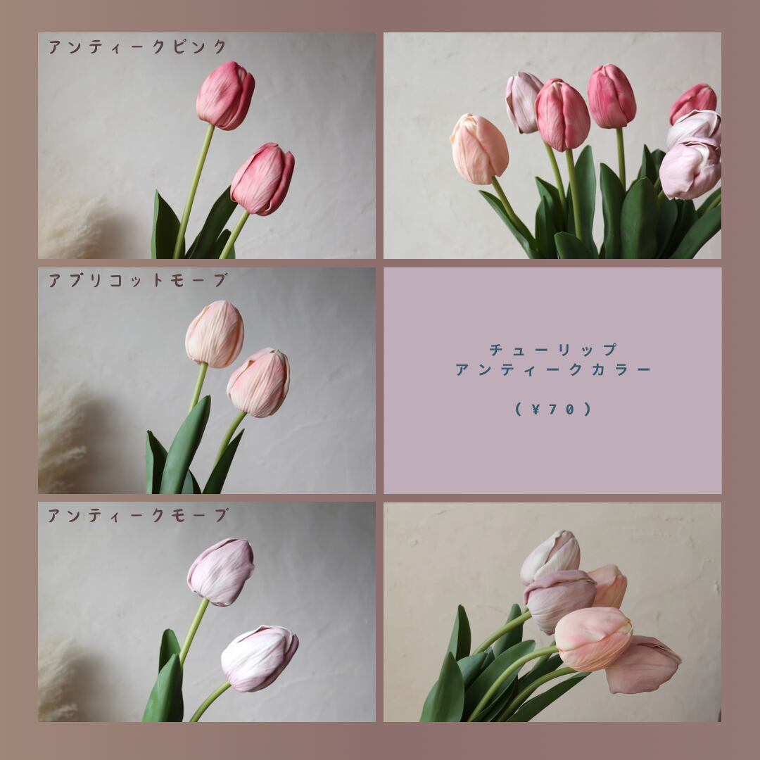 アンティークカラーのチューリップは1本あたり+¥70となります。通常カラーのみ希望の場合は「アンティークカラーなし」をご選択ください。