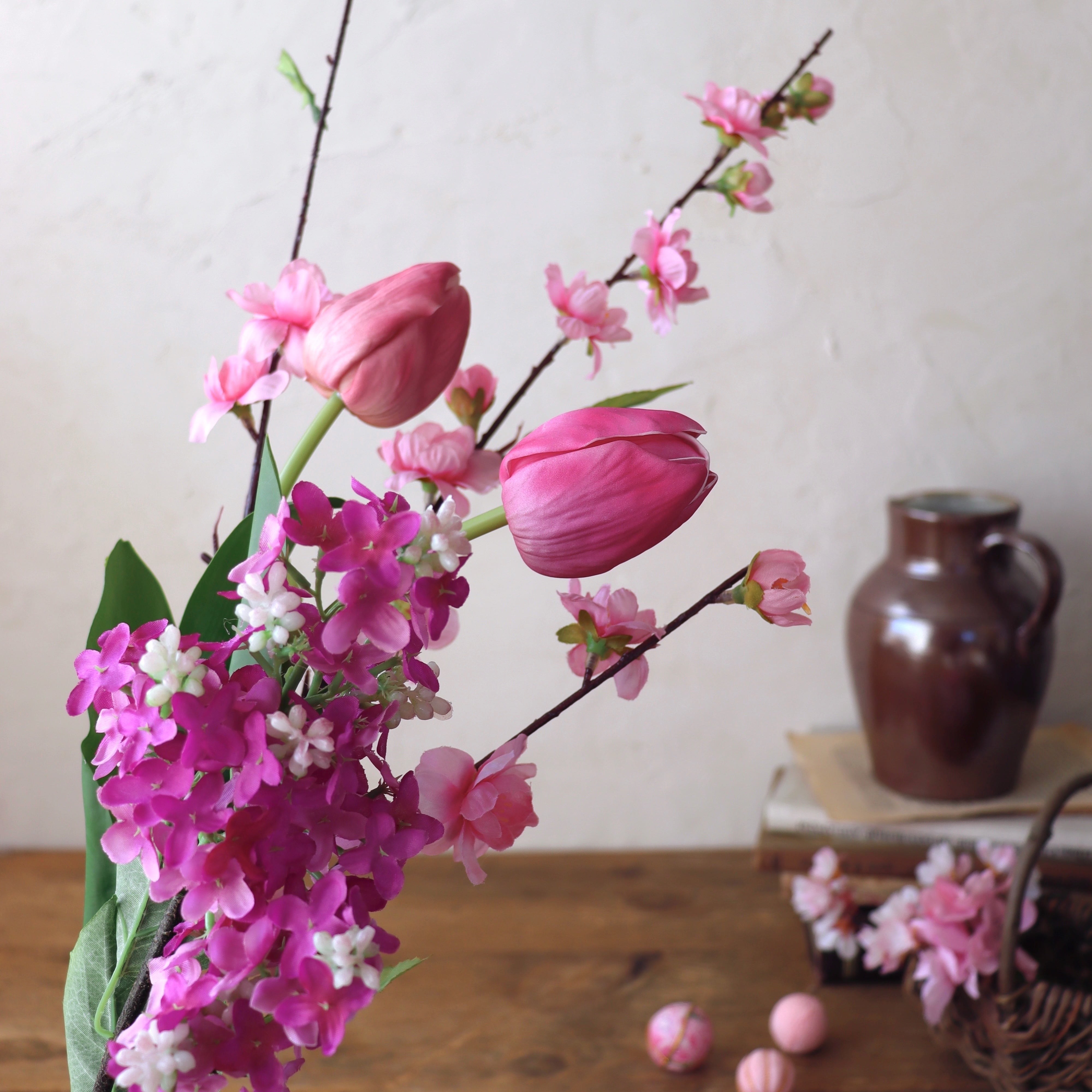 造花 アーティフィシャルフラワー 花桃 ライラック チューリップ 切り花 桃の節句 初節句 ひなまつり ひな祭り 雛飾り お雛様 雛人形 桃の花 和モダン 和風 和室 モダンインテリア 韓国インテリア 贈り物 誕生日プレゼント お祝い バースデーフォト ニューボーンフォト キッズフォト ベビーフォト 撮影小物 花材 ラッピング無料 japanese arrangement japaneseinterior japanesemade madeinjapan